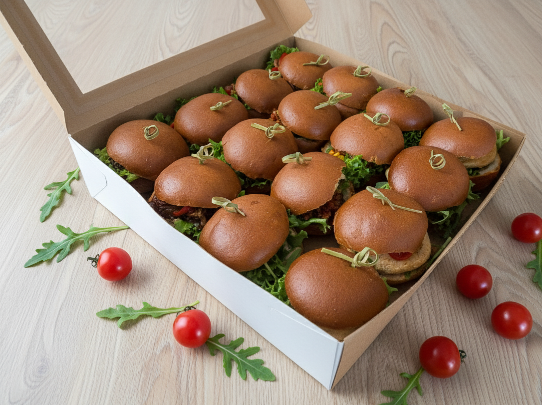 Soczyste, pełne smaku mini burgery w trzech wyjątkowych wersjach. Idealne na imprezy, wieczory ze znajomymi lub jako efektowna przekąska na eventach. Podawane na miękkich, maślanych bułeczkach, gotowe do serwowania.